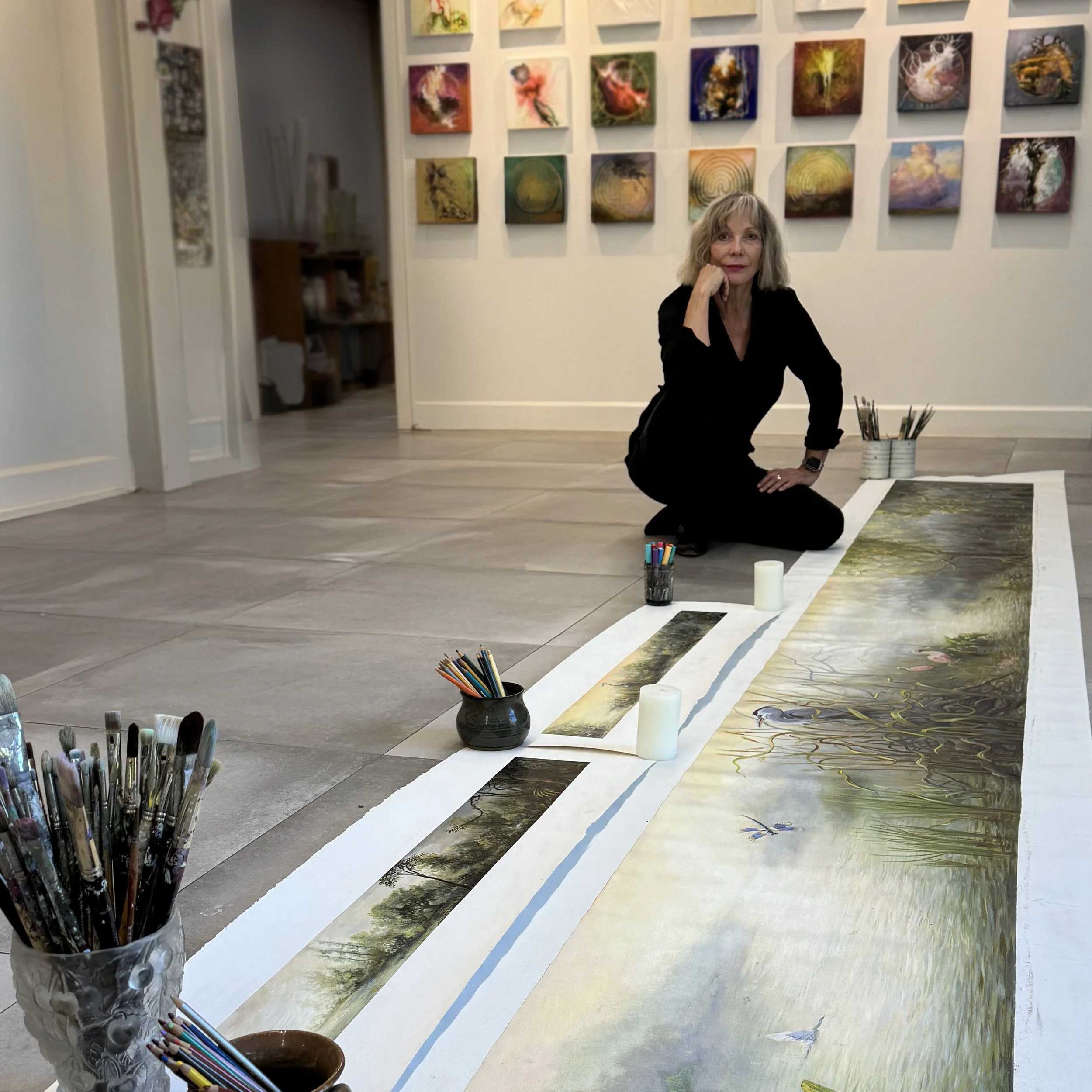 The solitude and total immersion deepen the satisfaction of stroking colors onto canvas. Painting is the ecstasy of building a relationship through private conversations and then, as the final varnish is applied, a disentanglement from that intimate other. What always follows is the anticipation of the next new liaison that will be better than any before, perfect, pure and so alluring. Perhaps this coming together and letting go is universal to the creative process.