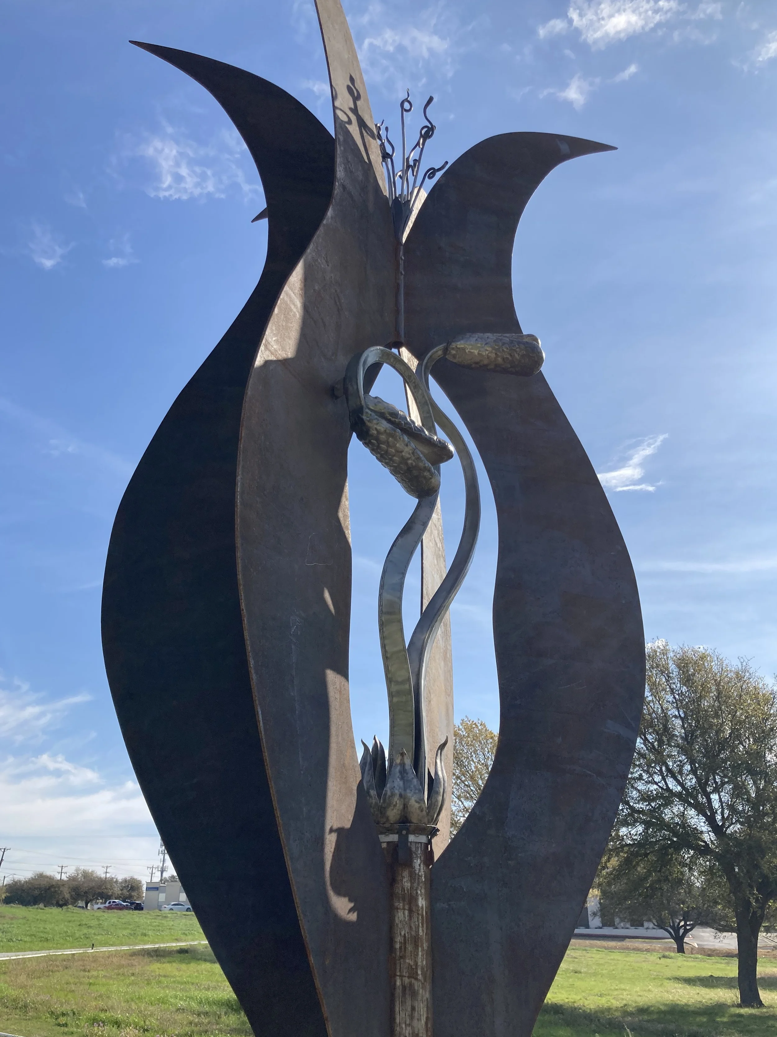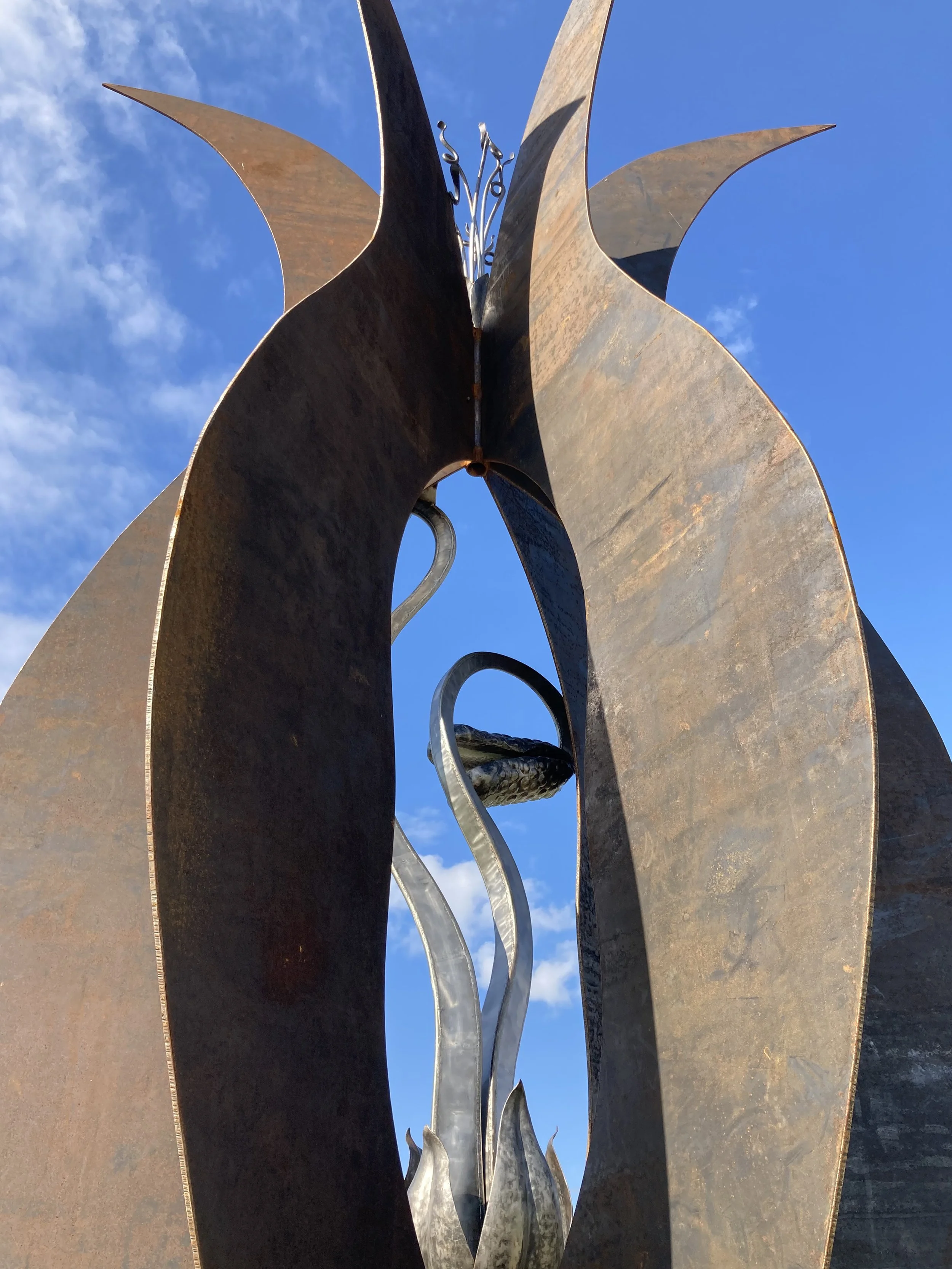 One with the Bee depicts a floral form opening to reveal the central pollination structures of the flower. The viewer experiences the scale of the work as if they were a pollinator interacting with a flower. The piece highlights the interconnectedness of all living things and reminds us that we are only a small fragment of this biome.