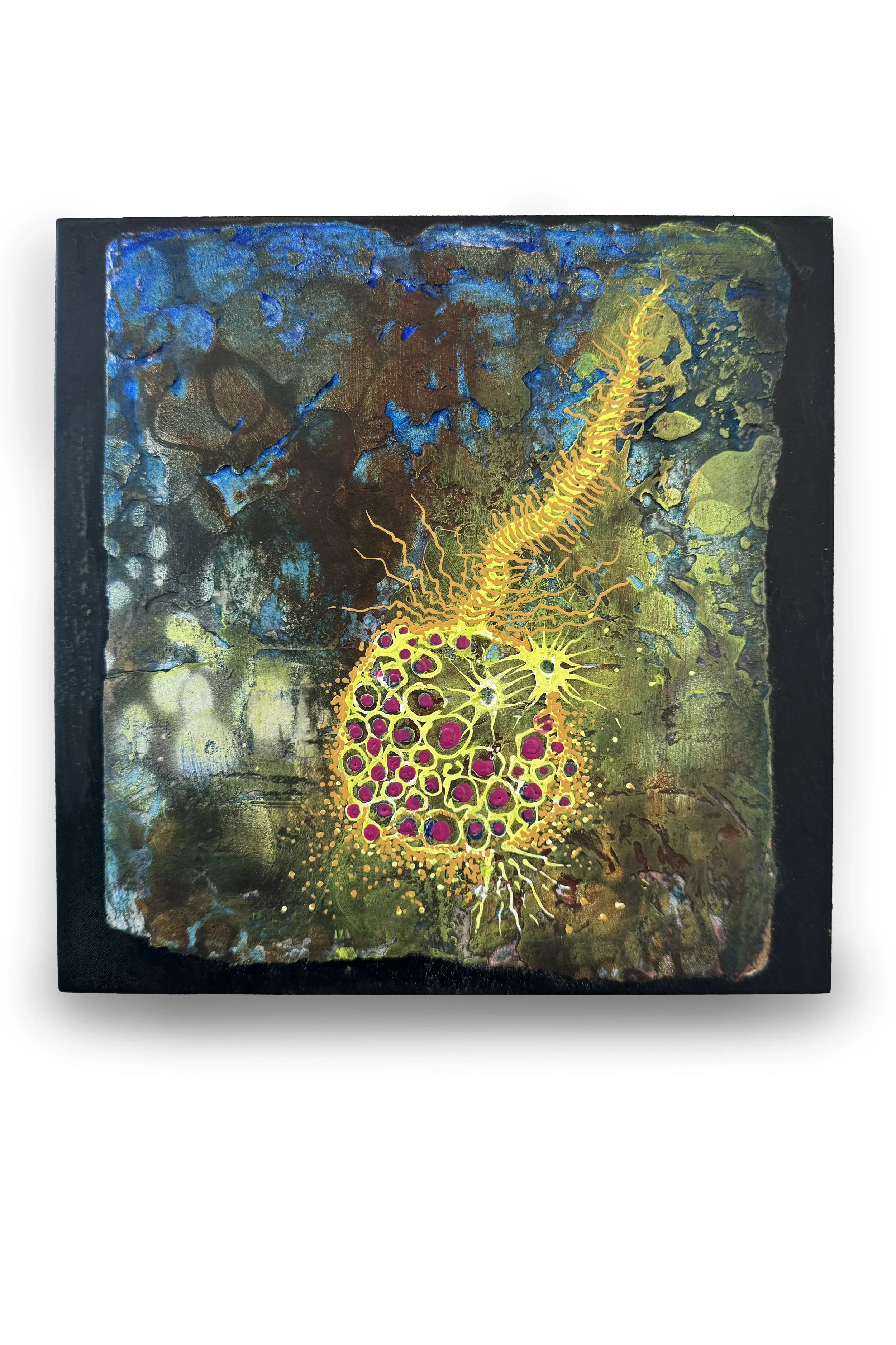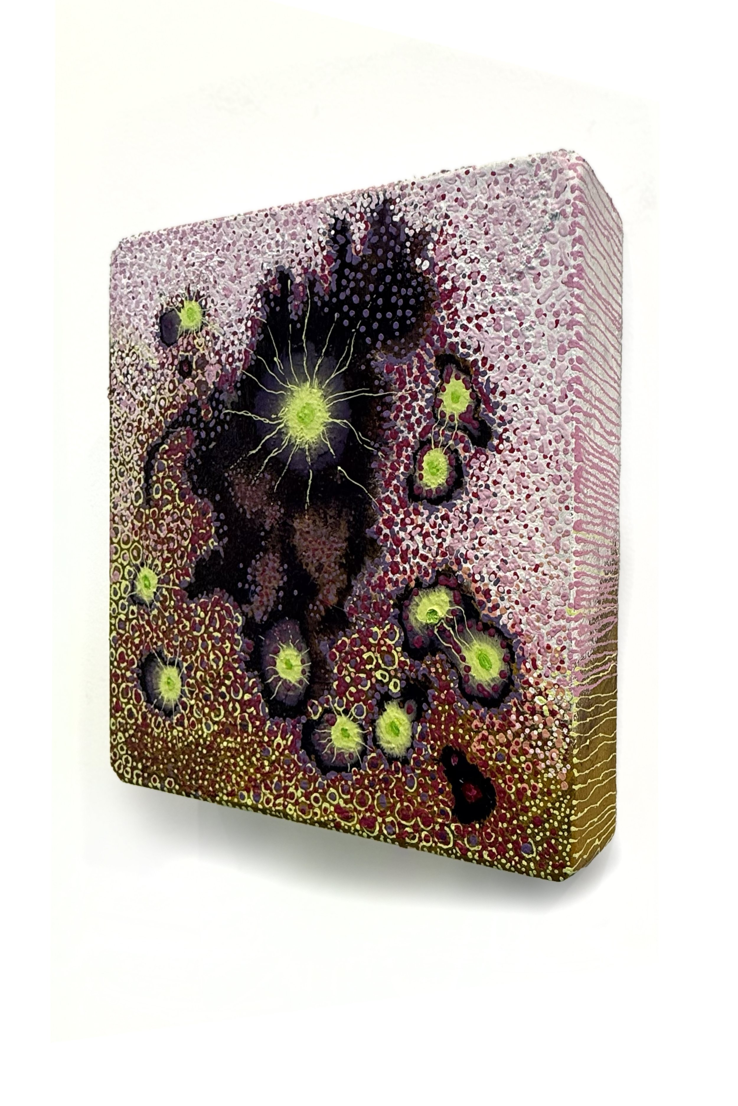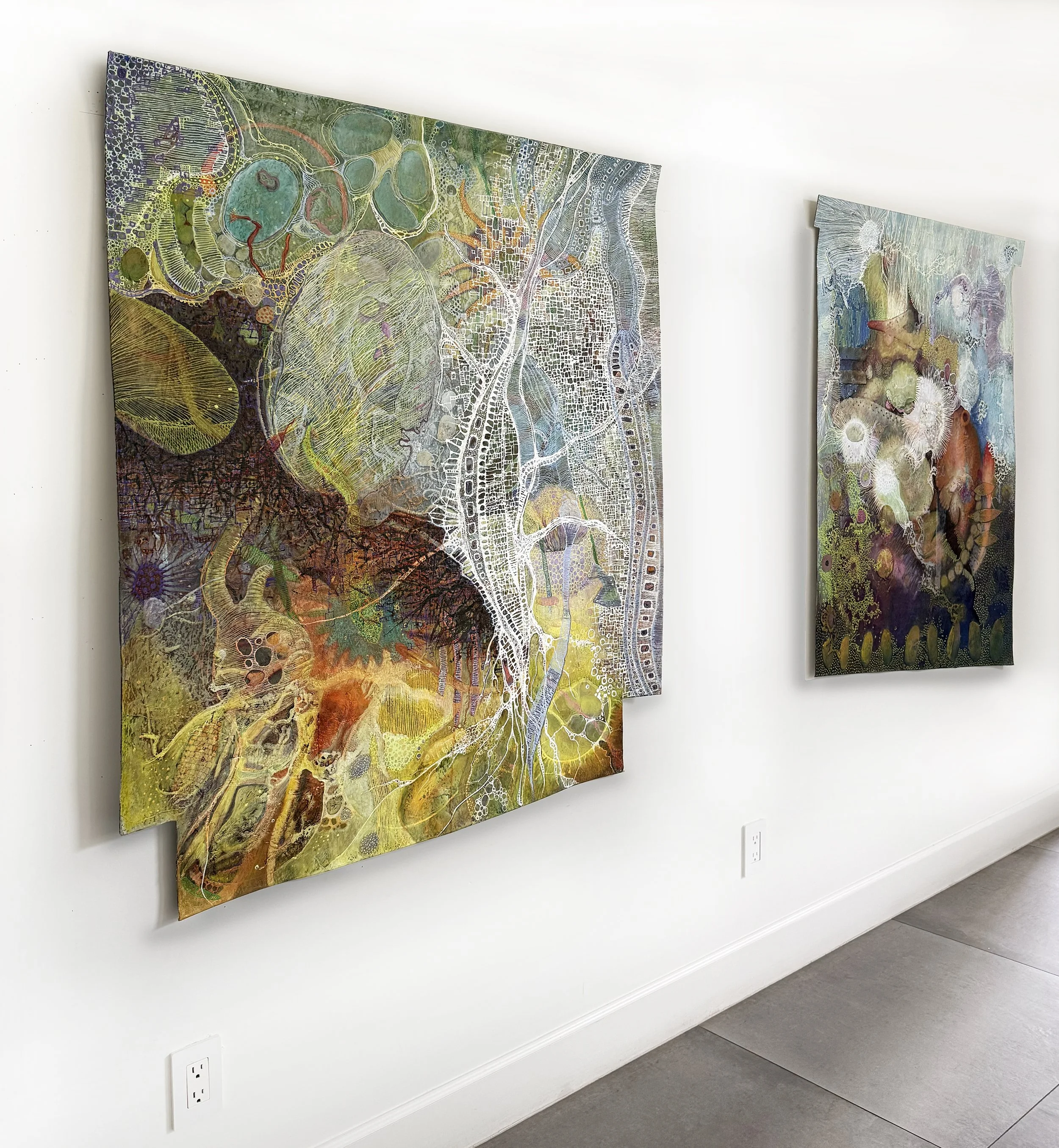 The work reflects a state of entanglement. What reads as landscape also reads as body. Macro and micro converge. The paintings are a record of process and a pose question. What does it mean to alter the systems that sustain life?