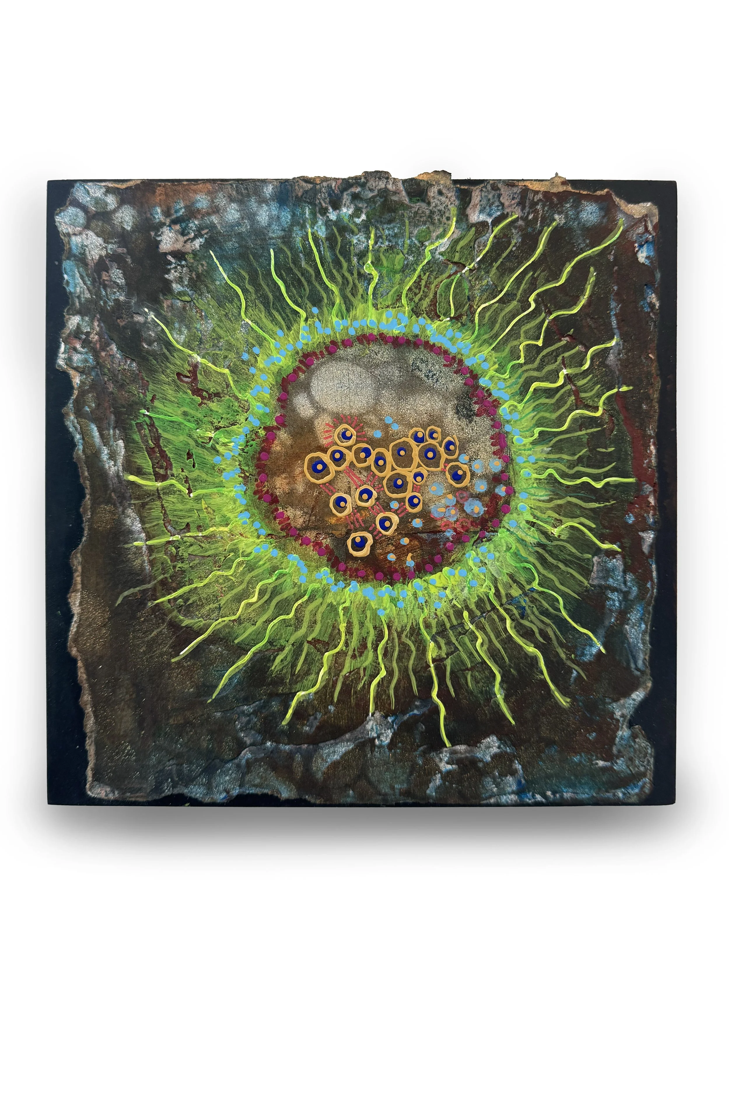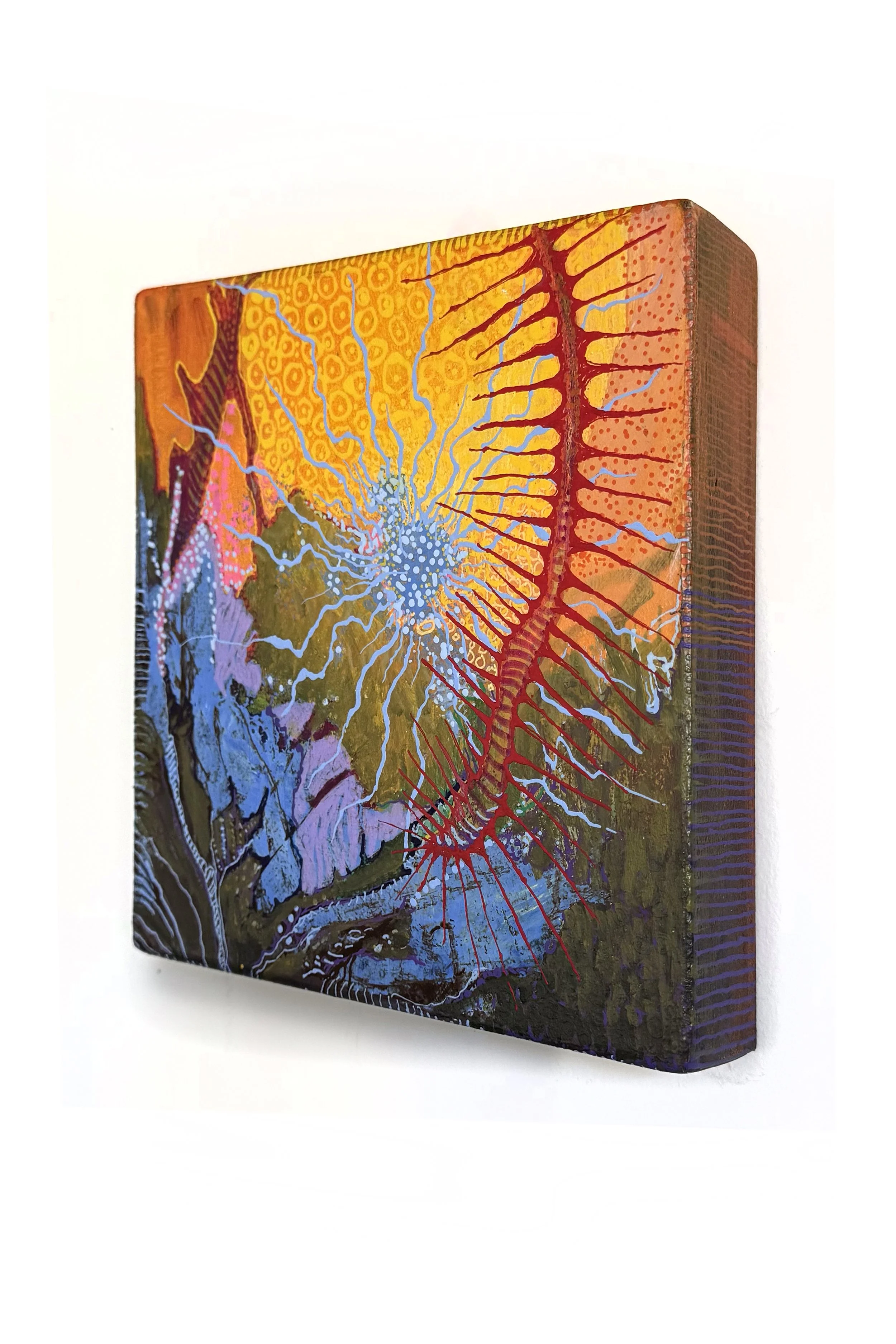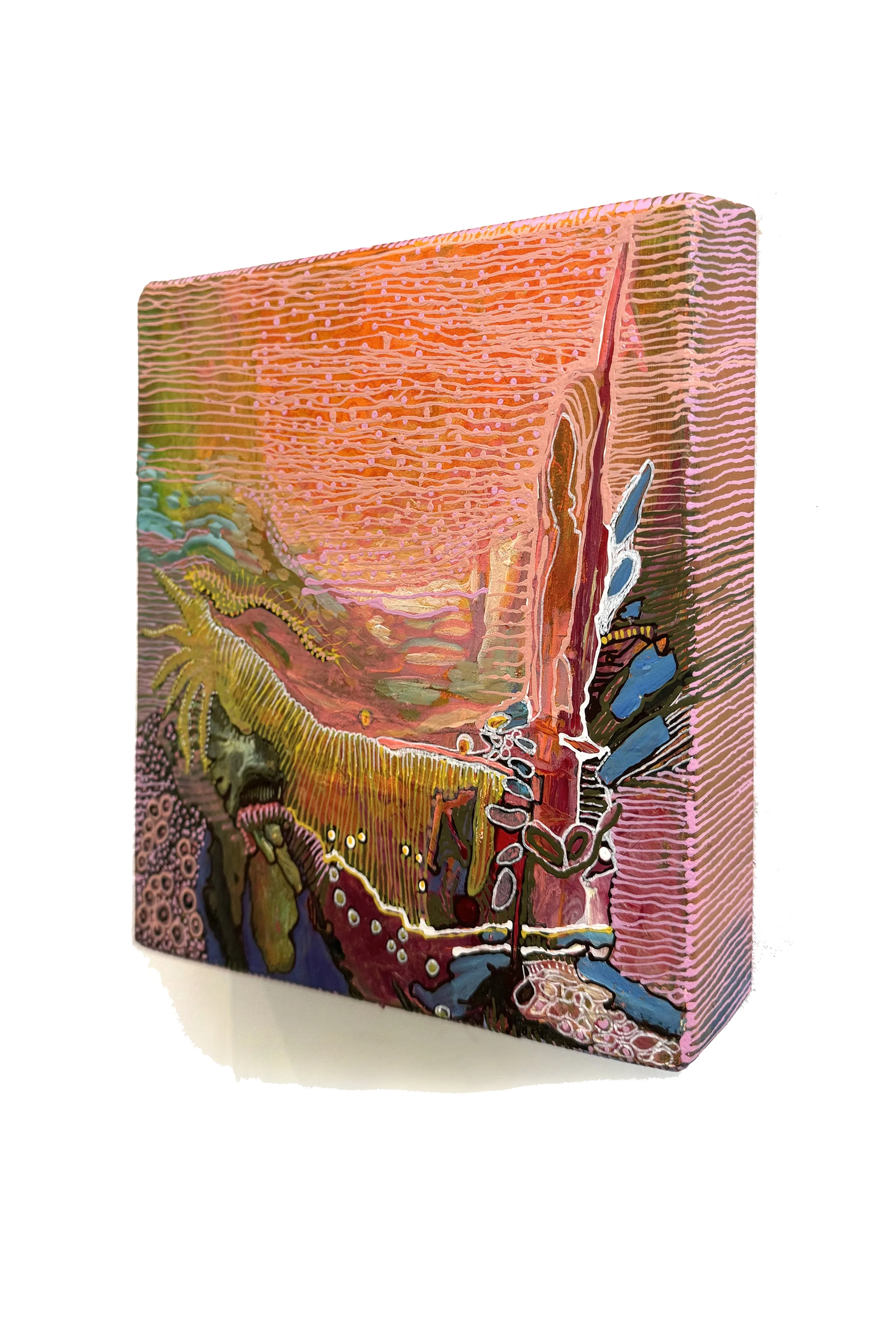 Central to this series of paintings is the divining of an altered state of consciousness, a celebration of disorientation. The elation of nature distorted through the psyche, twisted by technology, is echoed in the final flicks of paint. In public art, my approach is to fuse the constraints of the space and the needs of the client so seamlessly with my own vision that the resulting project feels as though nothing could have existed alone.